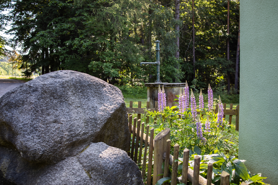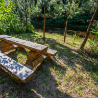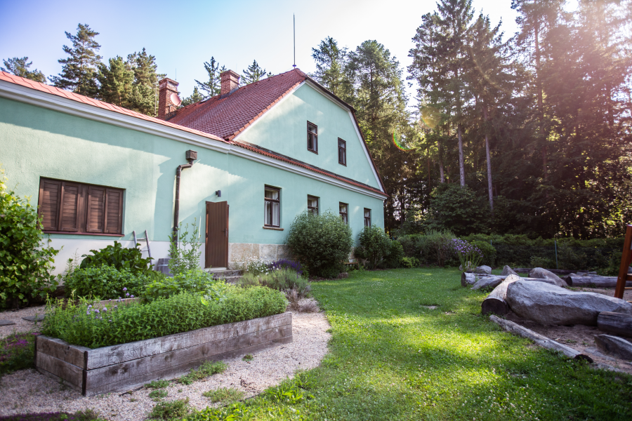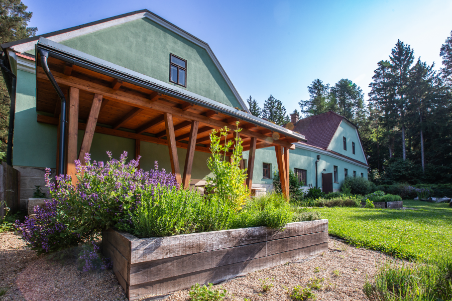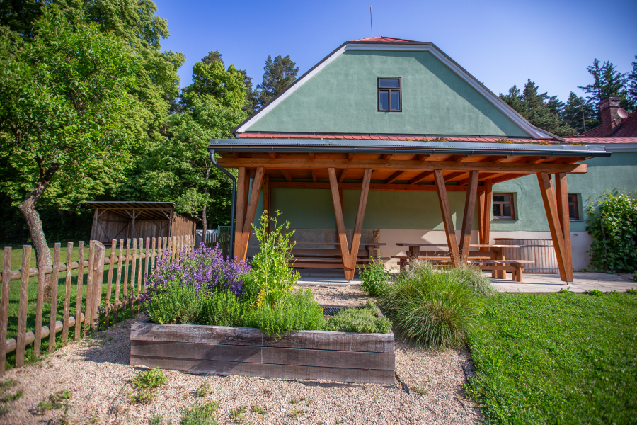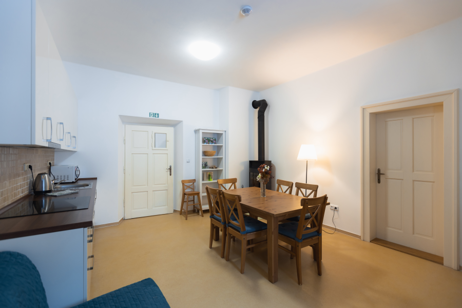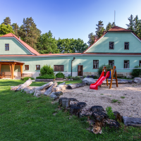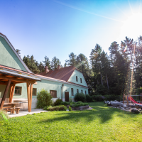 Dva apartmány oddělené společenskou místností s krbovými kamny umožnují dostatek soukromí pro všechny ubytované. V hospodářské části je k dispozici plně vybavená kuchyň s barem, stodola, která slouží jako společenská místnost a další zázemí s toaletami. Ve dvoře můžete využít kryté sezení a infrasaunu. Zahrada nadchne především děti, nachází se zde dětské hřiště a domeček v koruně stromů. Zbylá část zahrady je relaxační s bylinkovými a okrasnými záhony, pergolou a dalším venkovním posezením.