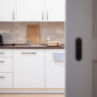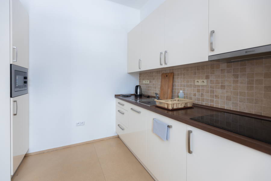 Oba apartmány mají plně vybavené kuchyňské linky s varnou deskou, lednicí, mikrovlnou troubou a rychlovarnou konvicí. K dispozici je venkovní plynový gril a ohniště.