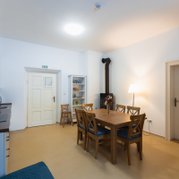 - jídelna s krbem a kuchyňským koutem