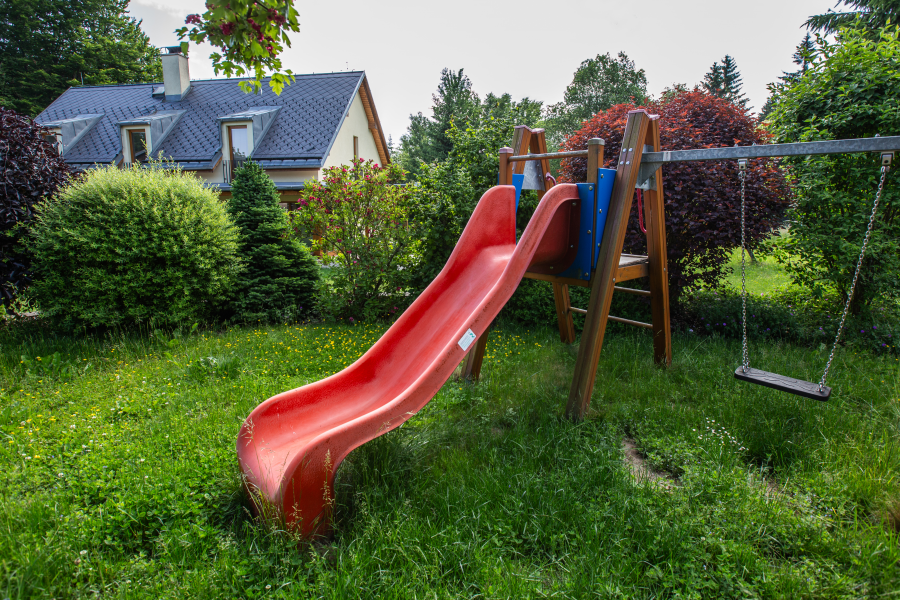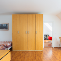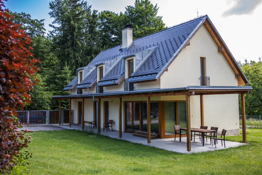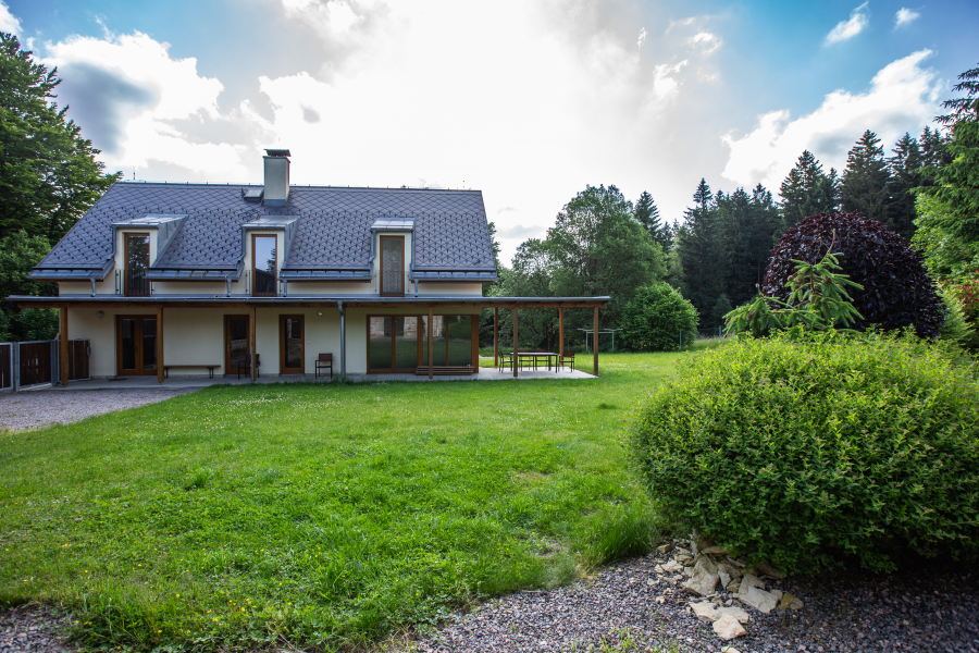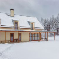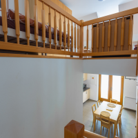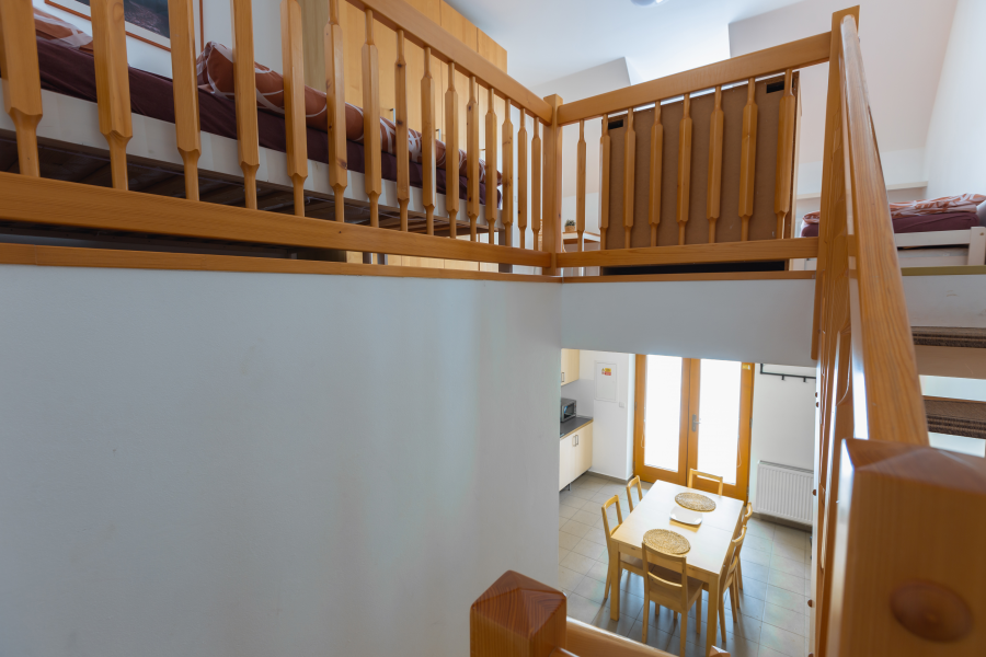 Prostorný apartmán je rozložen do dvou poschodí. V přízemní apartmánu se nachází kuchyňská linka s jídelním stolem a krbovými kamny a v horní častí dvě ložnice s dispozicí 3+1 přistýlka a 1+2 přistýlky s výhledem do zahrady.