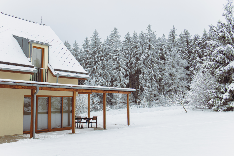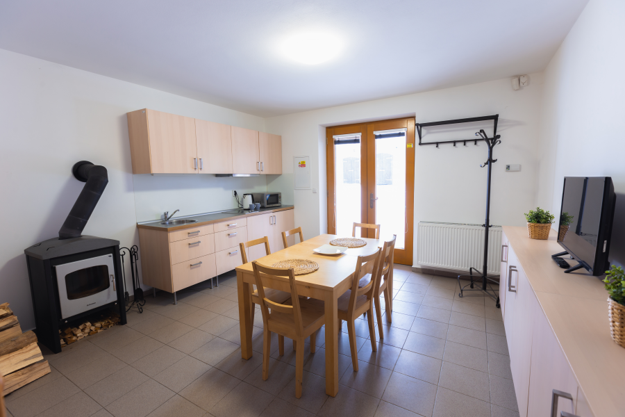 - jídelna s krbovými kamny a kuchyňským koutem