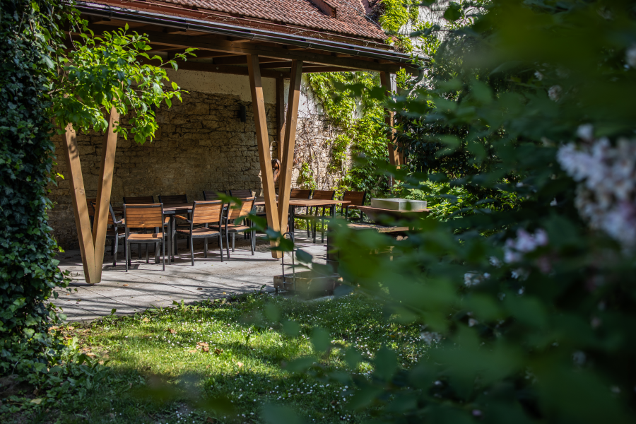 - zahrada s krytým posezením