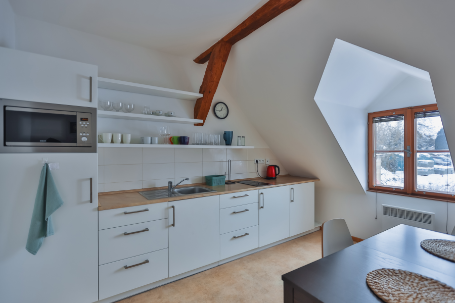 - sdílená kuchyňka s jídelním koutem