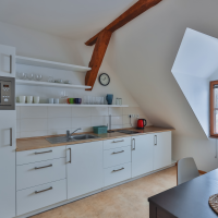 3 dvoulůžkové pokoje jsou situovány v podkroví objektu. Součástí každého pokoje je samostatná koupelna se sprchovým koutem. Pro všechny pokoje je plně vybavená společná kuchyňka. Tato dispozice umožňuje jak pronájem jednotlivých pokojů samostatně, tak i celého apartmánu najednou